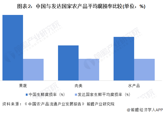 數(shù)據(jù)顯示,歐美國家已將生鮮產(chǎn)品的損耗率控制在5%的穩(wěn)定水平,其他食品的損耗率也降到了1%以下。而我國的生鮮平均損耗率在10%以上,是歐美國家的2-3倍。這意味著大量的生鮮產(chǎn)品在流通過程中被浪費(fèi),大大提高了生鮮市場的成本。