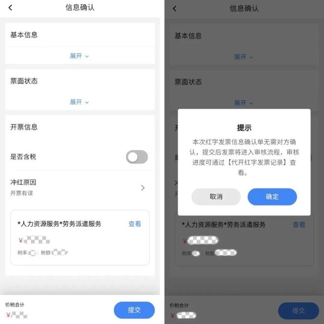 選擇對應(yīng)的【紅沖原因】并【提交】,等待稅務(wù)人員審核。您可以隨時通過【代開紅字發(fā)票記錄】查詢辦理進度。