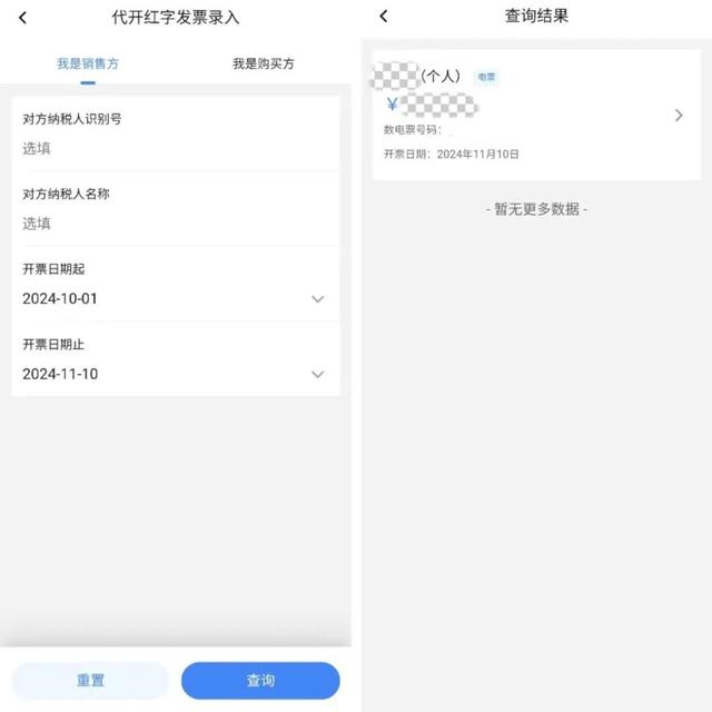 在【代開紅字發(fā)票錄入】模塊選擇【我是銷售方】,輸入查詢條件查詢需要紅沖的發(fā)票,在查詢結(jié)果界面選擇對應(yīng)的發(fā)票。