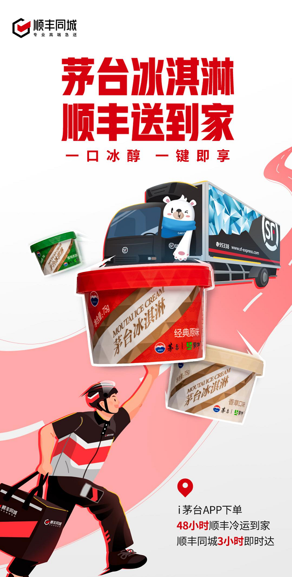 事實上,茅臺冰淇淋不僅可以線下購買,同時也上線了“i茅臺”APP。為了將經(jīng)典的冰醇美味最快地送達用戶身邊,順豐同城聯(lián)合順豐冷運一同為茅臺冰淇淋打造綜合物流解決方案,讓消費者宅家也能享受舌尖上的美味盛宴。